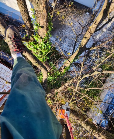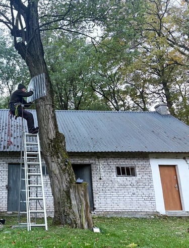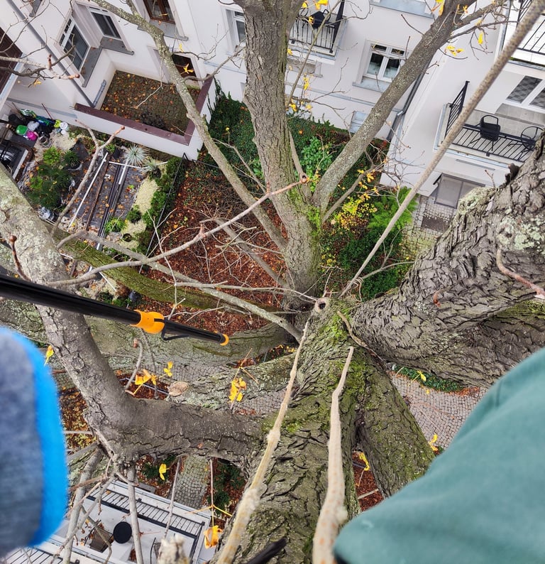 Professional cuts using rope-access techniques. Safe for trees, people, and surroundings — following arboricultural standards.